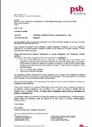 安* 同学 来自:四川 成都 已拿到:新加坡PSB学院 录取通知书