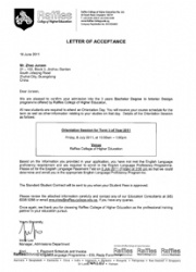 夏* 同学 来自:湖北 黄石 已拿到:新加坡莱佛士高等教育学院 录取通知书