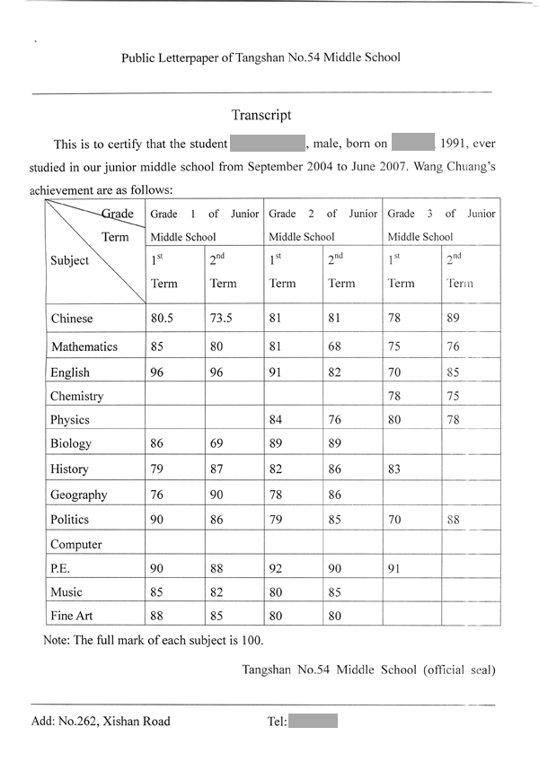 3、初中三年成绩公证书原件。 [初中三年成绩、英文、初中三年成绩证明公证书、英文]